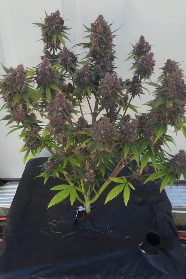 100% germination Fairly short veg time but grows vigorously building a strong foundation in little time to set up for flower. Very thick sturdy branching to support heavy buds. Fat fan leaves and Ideal internodal spacing results in little wasted space while allowing light and airflow to penetrate. Once entering flower, majority showed early onset of purple bleeding thru newly formed bud sites, expanding throughout the bloom cycle. Once the flowering stretch winds down, buds start to bulk up at a rapid pace. Terps are very strong bringing a heavy smell of sweet berries with an undertone of chemical fragrance that gives a tingle to the nose. This strain seems similar to purple lemonade or crystal meth however the bud density leads to heavier yields. Handled stress impressively. Proper plant training would likely lead to extremely heavy yields under optimal conditions.