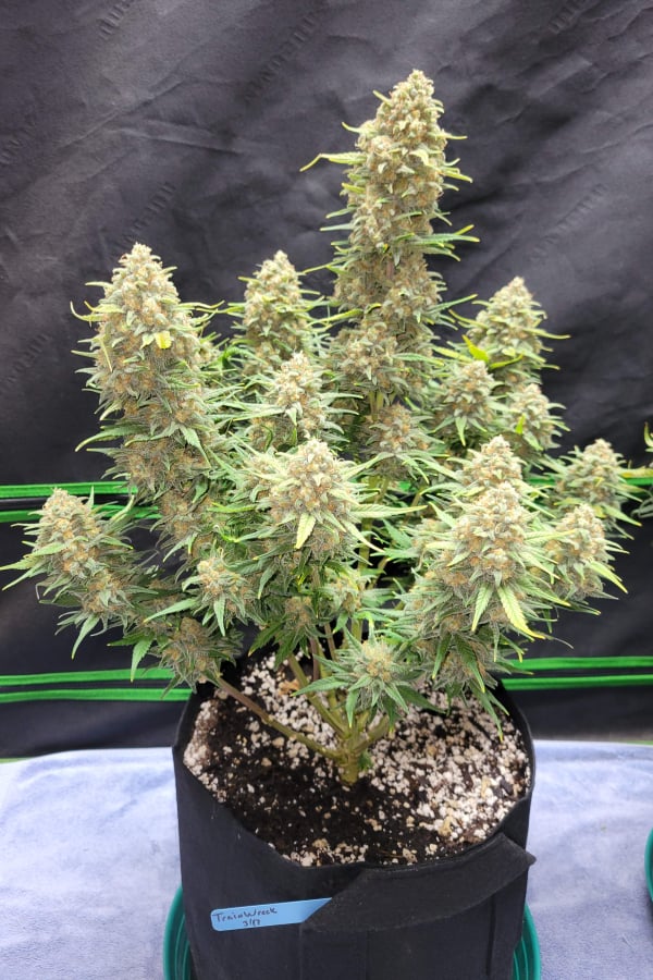 Palice odrůdy Trainwreck Auto jsou poměrně husté, s množstvím jasně žlutooranžových chloupků, které obklopují středně velké kalichy a krásně doplňují světle zelené palice. Očekávejte extrémně husté palice, které rostou naskládané a nakonec vypadají jako jedna obrovská palice na každé větvi. Budete ohromeni produkcí trichomů, palice pokryté cukrem s několika barevnými lístky, které z nich vyčnívají, vám zanechají prsty plné pryskyřice a jakmile je začnete drtit, ohromí vás pronikavou vůní citronové borovice s nádechem kyselosti a kořeněným pozadím.