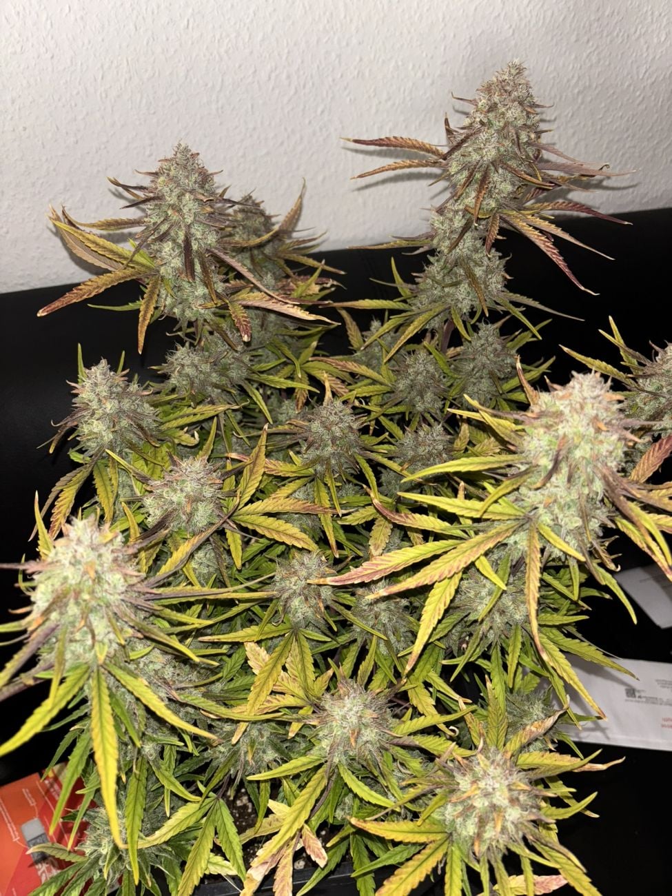 Hab die Samen erst 24h in Wasser Quellen lassen. Danach in mini Anzucht töpfe... Nicht mal 2 Tage später schon richtig lange Keimlinge und der Topf voller Wurzeln. Krass! Danach in Living soil... kleine behälter über den Sämling für die Luftfeuchtigkeit und dann gewartet... Wirklich pflegeleicht. Wächst schon fast perfekt... die Zweige ein bisschen nach unten und einmal eventuell toppen oder in der Blüte einmal den mainbud umlegen für gleichmäßige Reifung. Hab die ersten Knospen jetzt verkostet. So etwas leckeres und vor allem so einen neuen Geschmack hatte ich lange nicht mehr. Die Wirkung ein ergebendes glückliches high... wobei ich nicht weiß ob dieses Glücksgefühl einfach von dem unfassbaren Geschmack kommt, der bei jedem Zug ein breites Grinsen hervorruft. Fühle mich aktiv und motiviert. Nicht sehr verschallert oder paranoid! Top pflanze 5/5 Buds ein bisschen Luftig. Kein krasser Ertrag aber das nehm ich für den Rest so was von in Kauf!