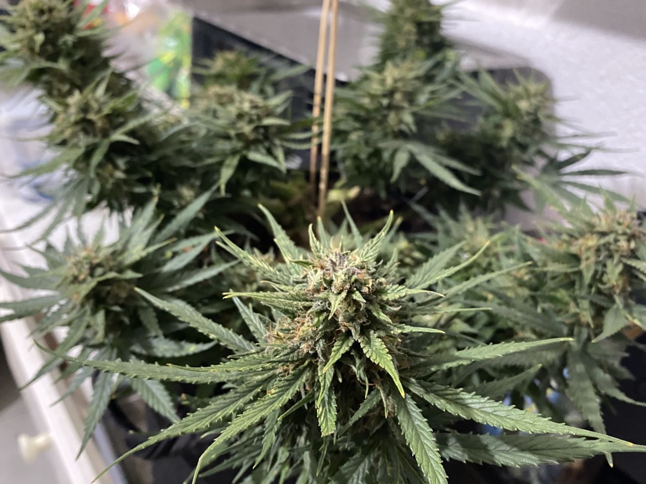 Wir empfehlen dringend die Verwendung eines Scrog-Netzes oder Bambuspfählen, um die Zweige zu stützen, da die dichten Buds am Ende zu schwer für die Zweige sein können. Wenn du erfahren genug bist, empfehlen wir, LST-Techniken durchzuführen, wie z.B. das Herunterbinden der Äste oder leichtes Entblättern. Auf diese Weise erlaubst du dem Licht, tiefer zu gelangen und eine bessere Luftzirkulation zwischen den Buds zu gewährleisten, was die Erträge erhöht und Schimmel und Ungeziefer fernhält. Denke daran, eine Woche vor der Ernte gründlich zu spülen, um die wahren Aromen und Geschmacksstoffe während des Reifeprozesses zu fördern.