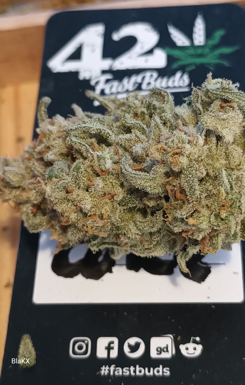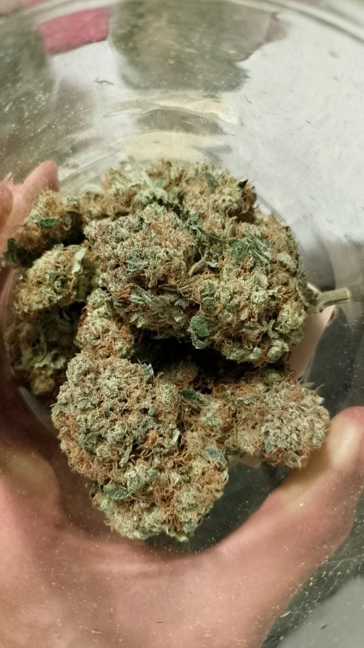 Die Buds wachsen dichter, als die von den meisten Sativa-dominanten Hybriden, sie entwickeln ein spitzes, fast speerförmiges Aussehen und geschwollene Blütenkelche mit ein paar dünnen, hellorangen Härchen, die um sie herum verteilt sind, sowie eine dicke Harzschicht auf den Buds, die ihnen eine weißlich-grüne Farbe verleiht. Du wirst eine Menge Sugar Leaves mit haufenweise Trichomen sehen, die dir schon vor der Ernte eine Vorstellung davon geben, wie intensiv und stark das Raucherlebnis sein wird.