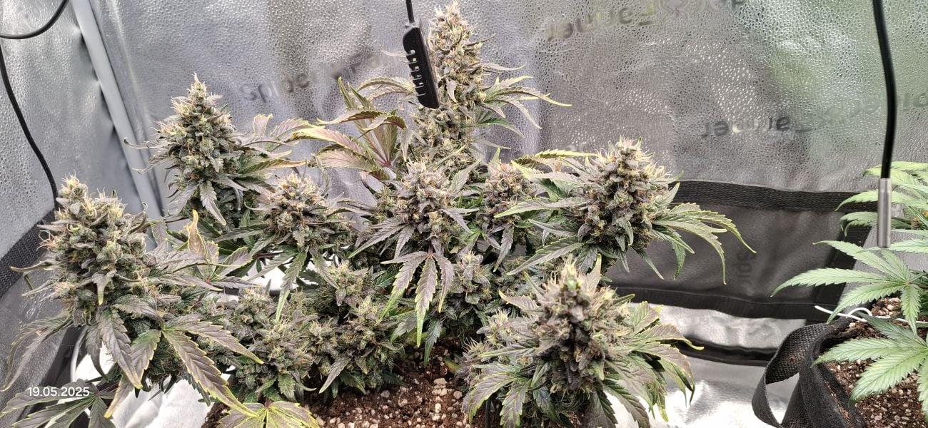 Ich hab sie in einem einfachen DWC-System ohne Training nur mit Entlaubung gegrowt und sie war nach 63 Tagen fertig, vom aufmachen der Verpackung bis zur Erntereife. Awesome