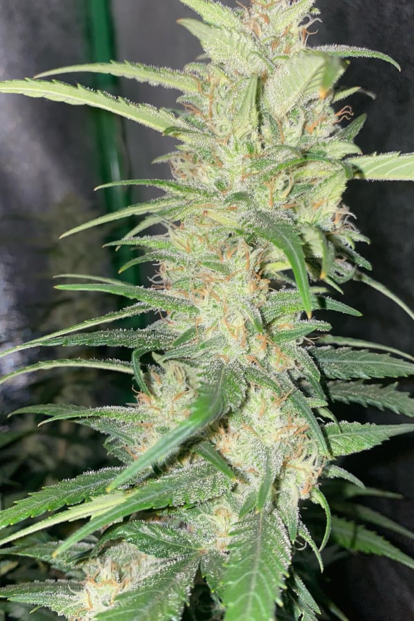 Les bourgeons sont plus denses que la plupart des hybrides à dominance Indica, ils développent un aspect pointu presque en forme de lance et des calices gonflés avec quelques fins poils orange clair espacés, autour d\'eux une épaisse couche de résine sur l\'ensemble des bourgeons qui leur donne une couleur blanchâtre-verte. Vous verrez beaucoup de feuilles avec des tas de trichomes qui vous donnent une idée de ce à quoi vous pouvez vous attendre avant même la récolte, ce qui signifie que cette variété frappe fort et qu\'elle convient aux consommateurs les plus exigeants.