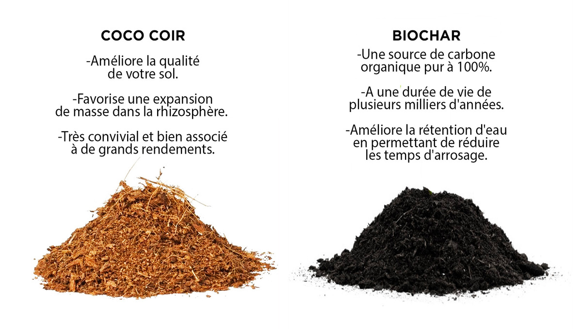 - 15% fibre de coco ou 15% biochar ou 15% vermiculite