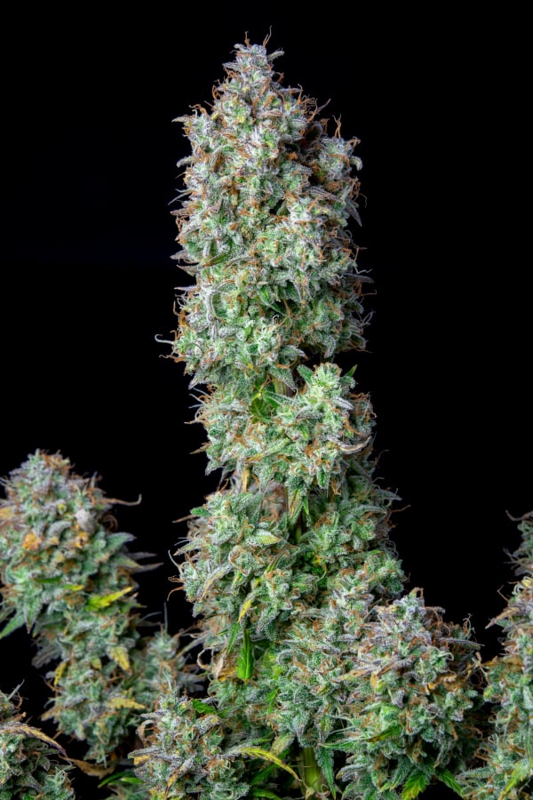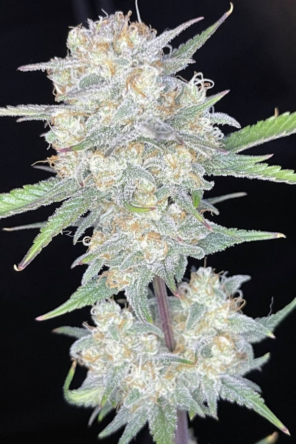 Les bourgeons sont plus denses que la plupart des hybrides à dominance Indica, ils développent un aspect pointu presque en forme de lance et des calices gonflés avec quelques fins poils orange clair espacés, autour d\'eux une épaisse couche de résine sur l\'ensemble des bourgeons qui leur donne une couleur blanchâtre-verte. Vous verrez beaucoup de feuilles avec des tas de trichomes qui vous donnent une idée de ce à quoi vous pouvez vous attendre avant même la récolte, ce qui signifie que cette variété frappe fort et qu\'elle convient aux consommateurs les plus exigeants.