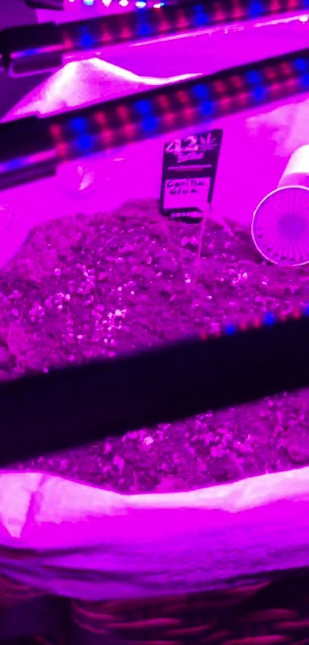 Hello, thanks for asking. Our Gorilla Glue takes 9-10 weeks from seed to harvest so it should start flowering around week 5 but if stress slows down growth it may take a bit longer. Please send an email with more information to