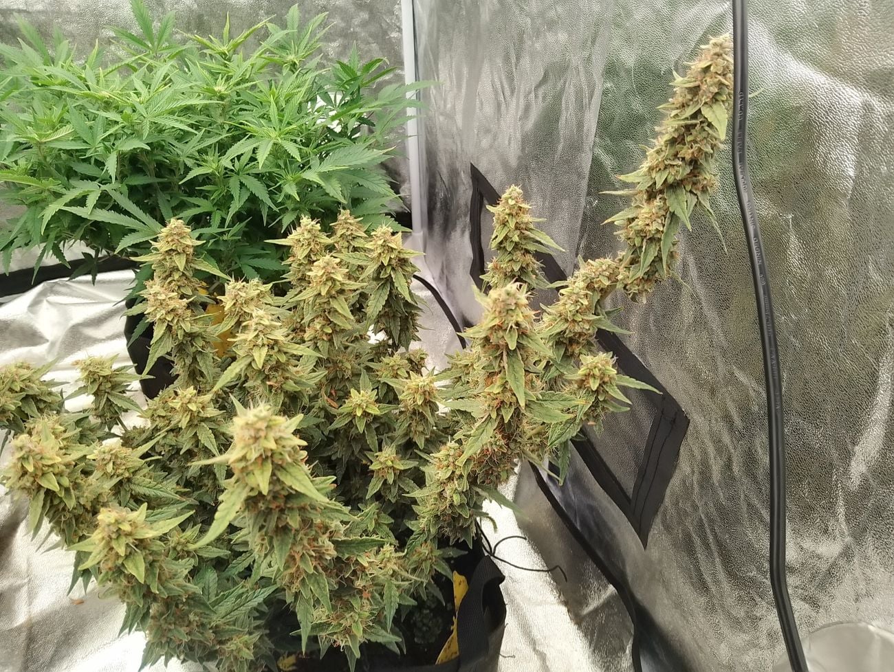 All three plants were consistent in size, yield and quality. One had a slight shade of purple, the other two were not purple at all. Good plant structure, easy to grow, nice dense high quality buds. One of the better seeds I’ve gotten here.