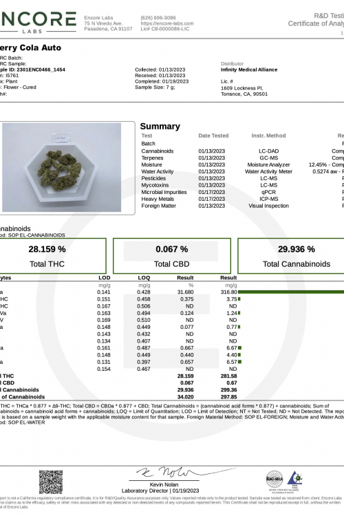 Sapore di ciliegia potenziato con il 29,936% di cannabinoidi.