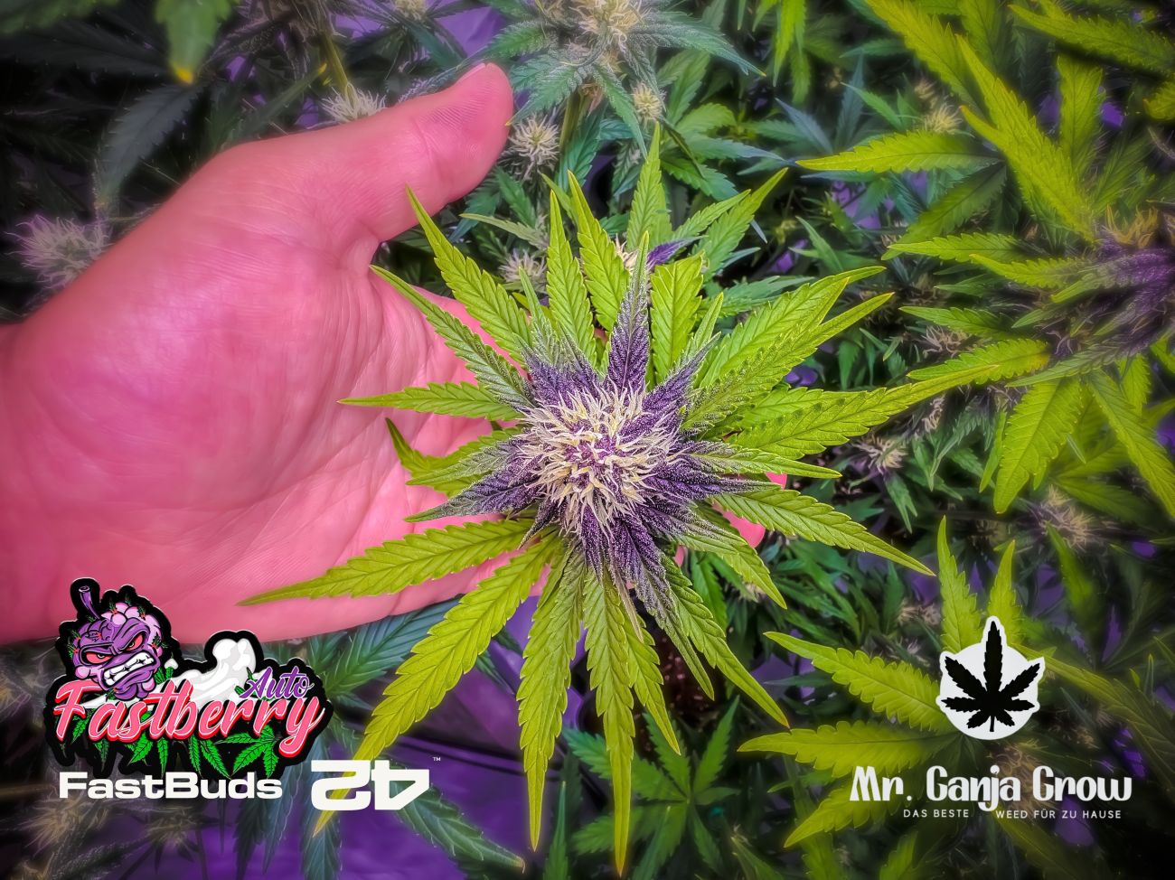 Durante le prime fasi della crescita, rimane bassa, con una breve spaziatura internodale e foglie a ventaglio dalle punte spesse. Si allungherà e crescerà con una cola centrale principale e un'abbondanza di rami laterali che finiranno vicino alla stessa altezza. In sole 9 settimane, Fastberry Auto può produrre circa 400-500gr / m2 di cime viola di alta qualità. Goditi lo spettacolo floreale con questa signora nel tuo giardino mentre mostra toni di rosso, viola e blu.