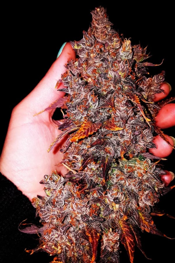 Grazie alla sua influenza indica, i suoi fiori sono piccoli e densi, con una massa solida. Sono difficili da spremere e rivestiti in grappoli di tricomi ricchi di terpeni floreali di mirtillo, costituiti da tonalità verde brillante e magenta. Quando trituri una cima, la stanza si riempie di una miscela di frutti di bosco, mirtilli e fiori freschi.