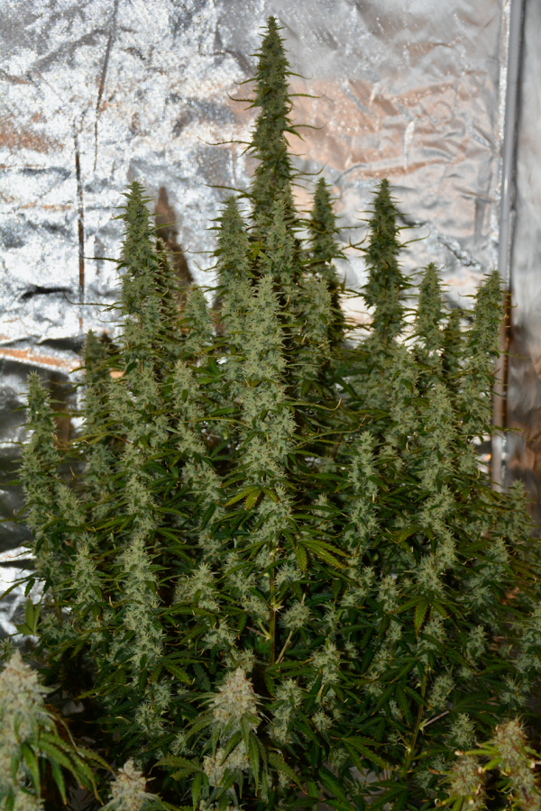 Raggiungendo circa 60-90 cm e crescendo con una caratteristica struttura folta e densa, non si allungherà molto e riempirà ogni internodo con cime spesse e glassate che diventeranno totalmente bianco perla alla fine della fioritura. Ci sarà un gran numero di rami laterali circondando una cola centrale principale, che crescono in modo simile ad un albero di Natale. Le sue cime grasse sono pesantemente rivestite di tricomi che si svilupperanno con calici strettamente compatti avvolti in pistilli di arancia elettrica, rendendo Green Crack Auto facile per il taglio e la manicure.