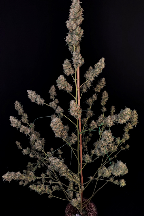 Questa varietà crescerà con una struttura corta e robusta con foglie spesse a ventaglio tipica della indica e uno spazio internodale corto. I calici appariranno piccoli e compatti e quando questa signora fiorirà, i pistilli diventeranno di un arancione brillante prima di sfumare in un marrone scuro. Fiorirà con una cola principale con rami laterali più corti, riempiendo ogni internodo con cime dense e zeppe di resina.