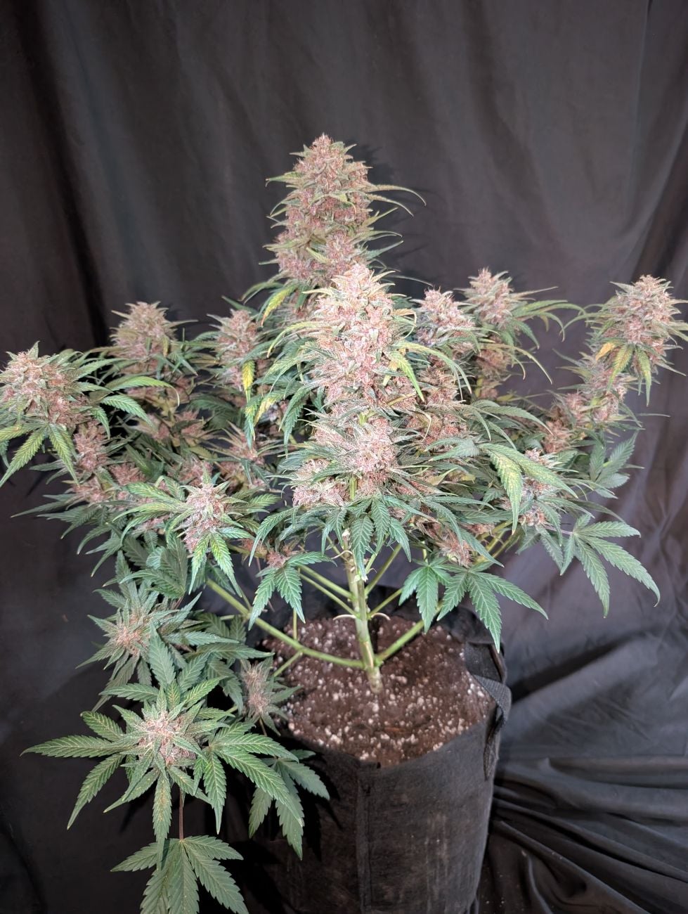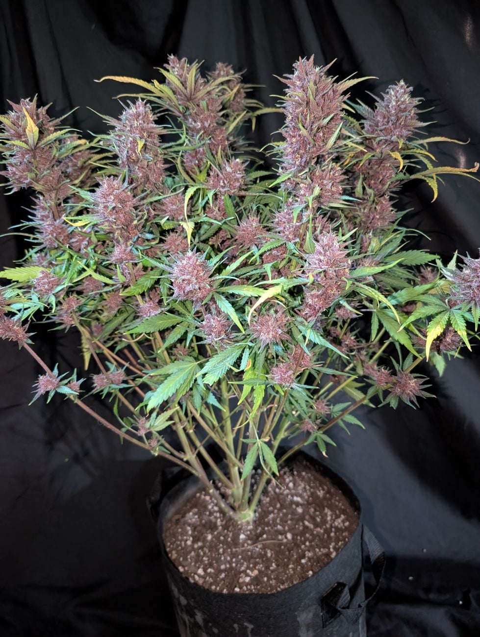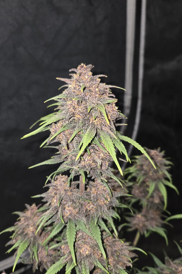 She grows quickly and easily, requiring minimal input while still producing dense, purple-streaked colas coated in frost. Cool temperatures will intensify her color, making her a great choice for outdoor growers in northern climates or indoor setups using LED and late-flower temperature drops. Despite her fast cycle, she yields generously and may need support during late bloom to hold up her heavy, resinous flowers.