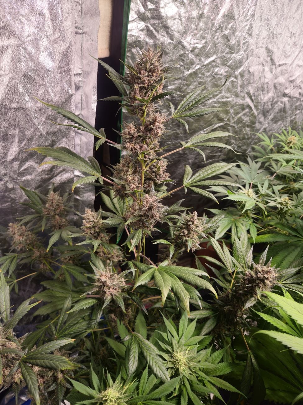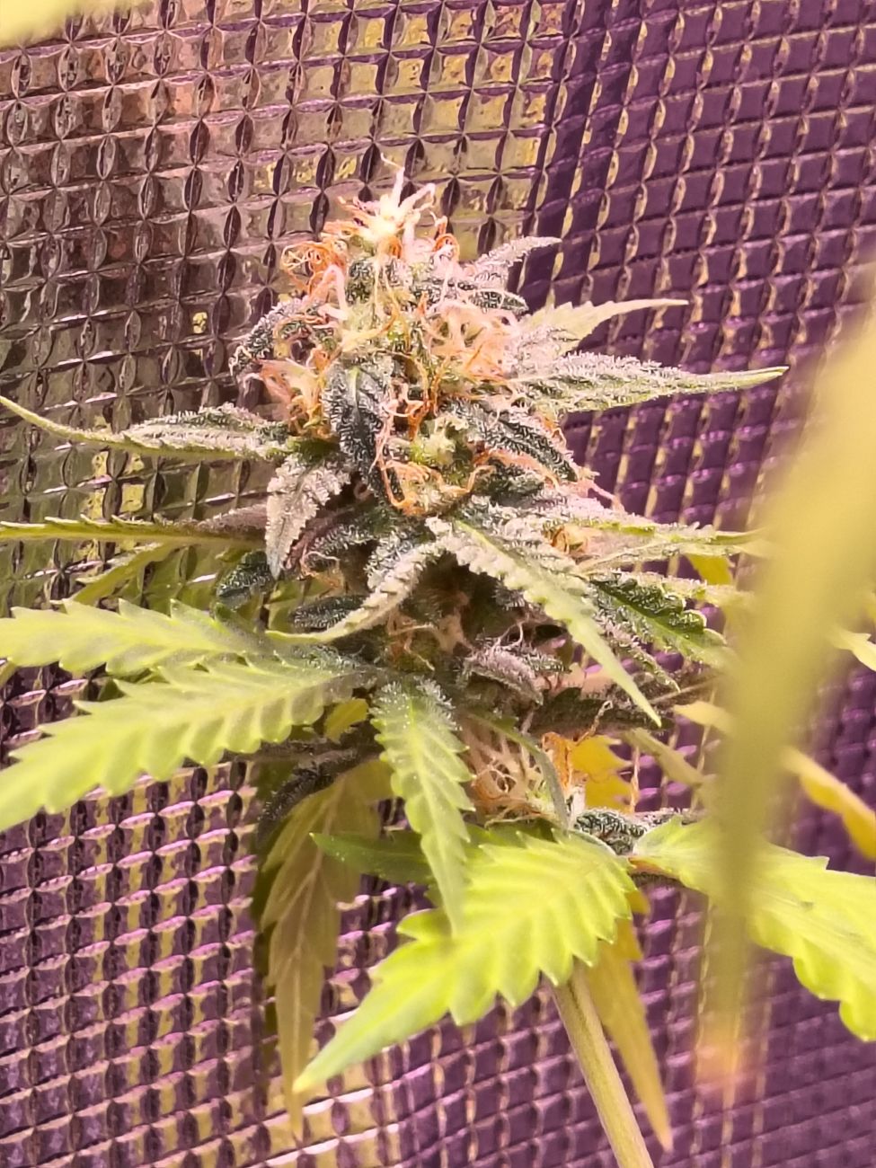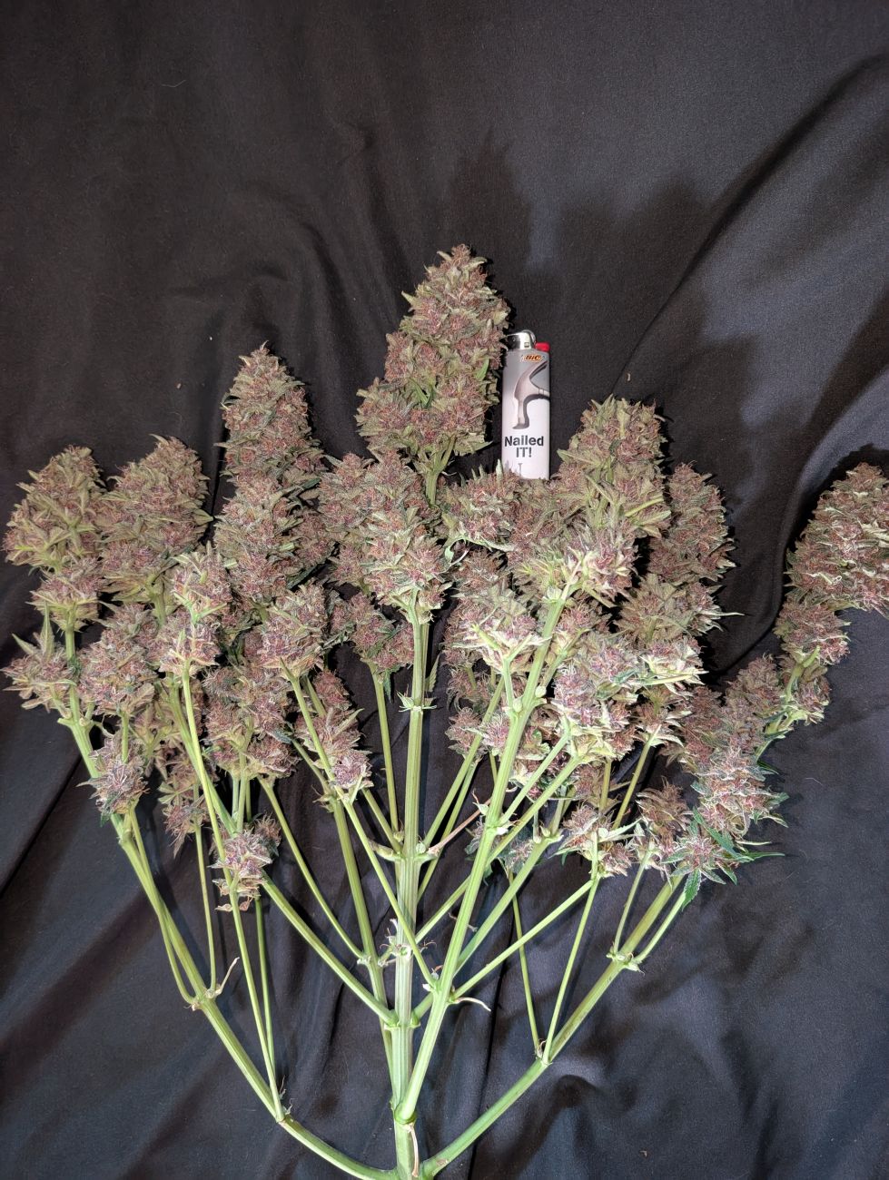She grows quickly and easily, requiring minimal input while still producing dense, purple-streaked colas coated in frost. Cool temperatures will intensify her color, making her a great choice for outdoor growers in northern climates or indoor setups using LED and late-flower temperature drops. Despite her fast cycle, she yields generously and may need support during late bloom to hold up her heavy, resinous flowers.