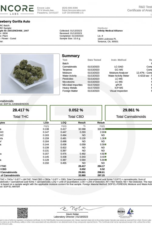 Con una concentrazione di THC fino al 28.417%, questa varietà autofiorente offre un potente sballo ibrido. Gli effetti di Strawberry Gorilla Auto iniziano nella testa con un\'intensa sensazione di felicità che aumenta la creatività e ti fa entrare nei tuoi pensieri più profondi.