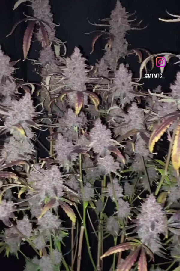 Tropicana Cookies Auto produce dei bellissimi fiori viola scuro, quindi aspettati di vedere cime scurissime con magnifiche sfumature rosa, viola e blu e una fitta peluria arancione scuro che si ricopre completamente di resina al momento del raccolto, donando alla pianta un aspetto quasi bianco lucido.