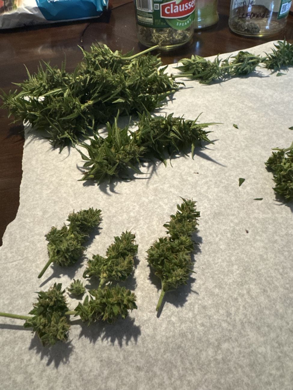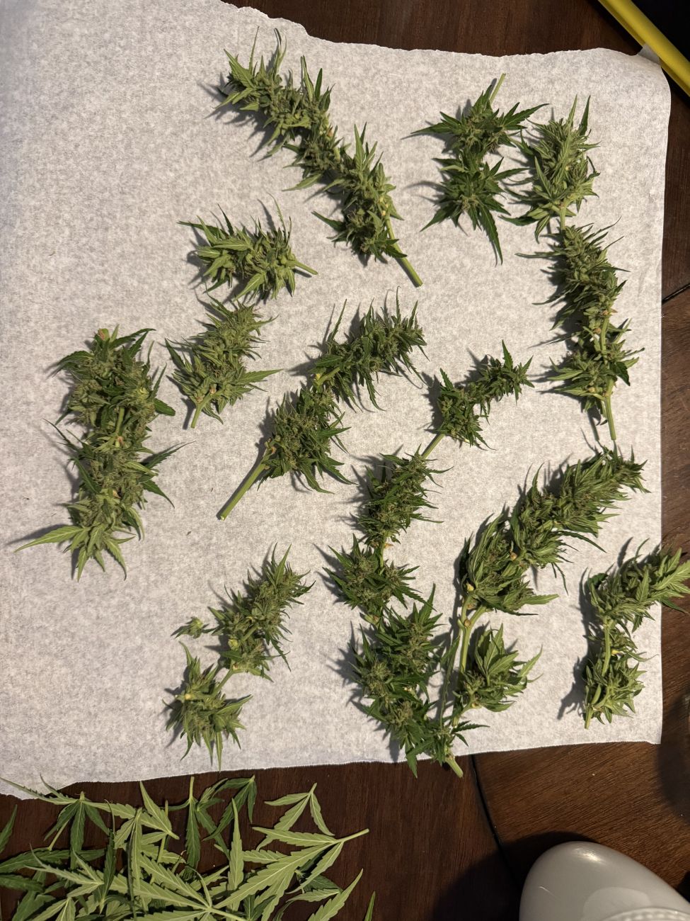 Outdoors this Pheno took 12 weeks she smells of fermented fruits but during the trim she smelt sweet!