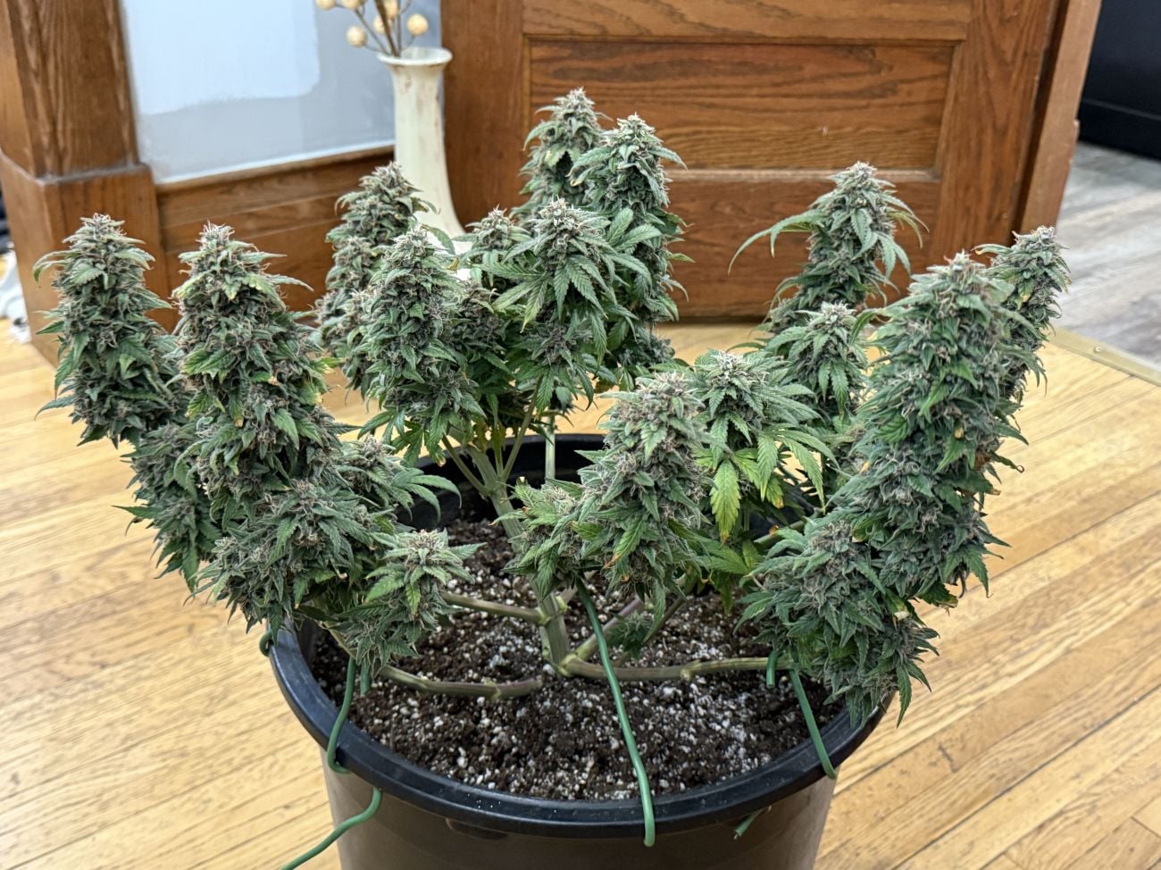 She grew well even with a bit of overwatering and too much Cal-Mag along being grown in a 3-gallon plastic bucket. Curing now and smells funky like a blend of ripe fruit.