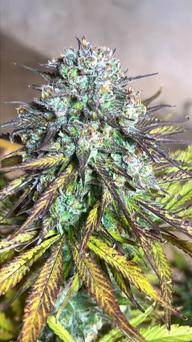 Growing to around 120 cm, she develops tight internodes and sturdy branches that stack rock-hard buds coated in trichomes. As she nears harvest, expect striking autumnal hues: green, yellow, orange, and red, and a loud sweet-and-sour apple aroma with dough undertones. Thanks to her resilience, she thrives in Sea of Green setups, and even handles light training well for those looking to push yields further.