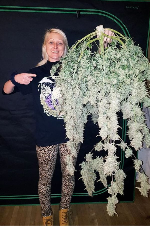From when it sprouted this girl grows quick. Its winter here so it loved the cold climiete. At 8 weeks tris were milky and harvested just before 9 weeks from seed. Cracking good plant riddled with tris. 20l pot cannaterra premium 18x6 lights 600x800 tent.
