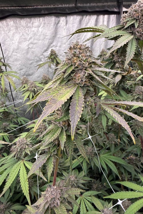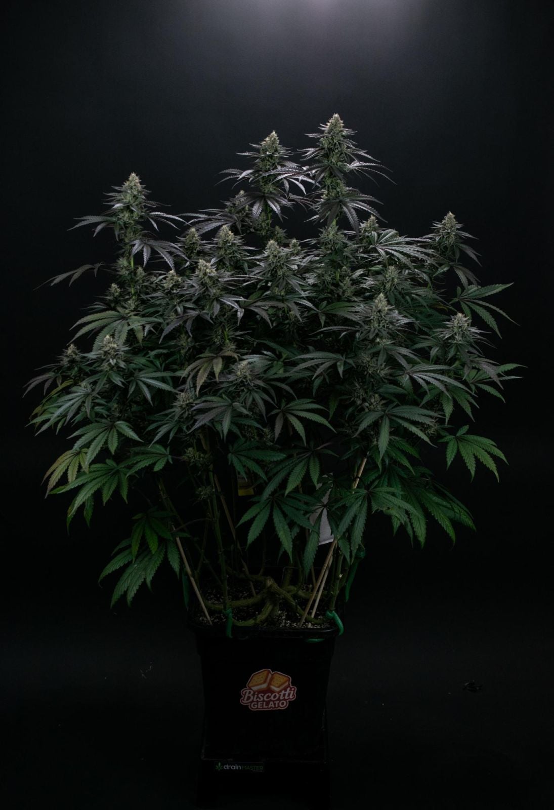Biscotti Gelato comes from the best cuts in our collection. Refined and adjusted to modern times, it offers up to 32% of potency (with most of commercial batches scoring a little above 30%), a perfectly balanced effect and a bright flavor. Being a 50/50 hybrid (some phenotypes lean slightly indica-dominant) it offers the sweet spot between clear euphoria, mental clearness, creative energy and body relaxation. In terms of aroma, think of an Italian dessert: sweet cookie and fresh lemon zest over a creamy base, with hints of spice and classic OG earth. The citrus-sweet notes linger at the exhale, finishing slightly peppery and “sparkling.” Biscotti Gelato shows vigorous vertical growth and is a true sunshine lover: you will definitely reap more benefits providing her about 10-15% more light compared to other strains. She responds well to defoliation, topping and SOG/SCROG thanks to vigorous lateral branching. Keep humidity moderate in late flower: her multiple compact and dense buds can suffer if air flow is poor. Outdoors it favors warm, sunny climates; and adding silica strengthens stems against coastal winds. She will take about 10 weeks to flower, while outdoors expect her ready around October in Northern hemisphere. The best phenotypes of Biscotti Gelato that we stabilized show plenty of “sugared” trichomes and may turn light purple if nighttime temps drop enough. Along with her heavy yields, flavor and potency, it makes her a perfect choice for commercial growers seeking to level up their game.
