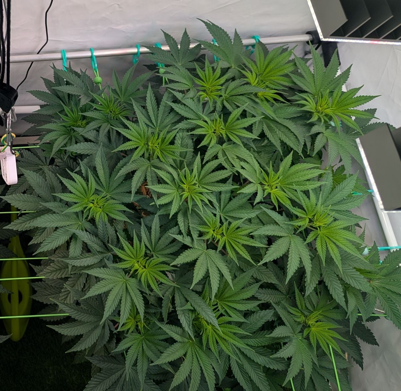 Papayton grows into a balanced, high-performing plant with strong lateral branching that rivals the central cola in both size, bud production and density. Her Christmas tree-like structure makes her ideal for optimizing grow space and boosting total yield potential, but make sure to provide her proper aeration throughout the whole cycle. As flowering progresses, the plant reveals a striking range of leaf colors—from deep green to nearly black—especially under cooler finishing conditions.